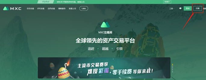 2、点击抹茶交易所首页右上角的注册,进入注册页面。